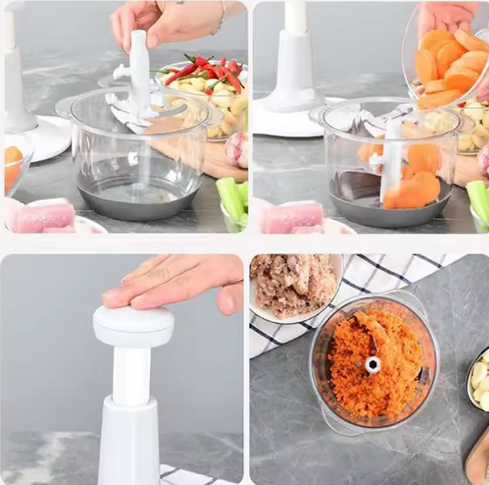 Make food preparation fast, easy, and mess-free with this multi-function manual food chopper. Designed for everyday kitchen use, it effortlessly chops, grinds, and mixes vegetables, fruits, meat, and more—without electricity.